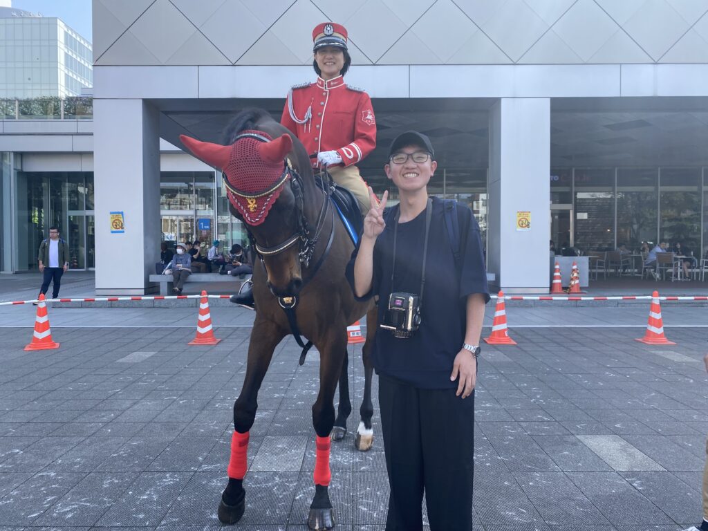 北千住に撮影に行きました。駅の近くで自衛隊と警察のイベントをやっていました。そこには騎馬隊らしき人たち来ていたので記念に一緒に撮ってもらいました。