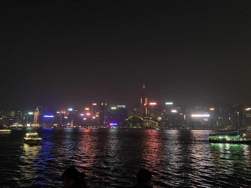 夜になって、TVでよく見る夜景を見に行きました。正直、うすい霧が邪魔して綺麗ではあるけど期待以下でした。